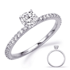 This Engagement Ring is available in 14K White Gold. There are a total of 36 stones. There are Rounds with a total carat weight of 0.31 set in a Micro Prong setting.