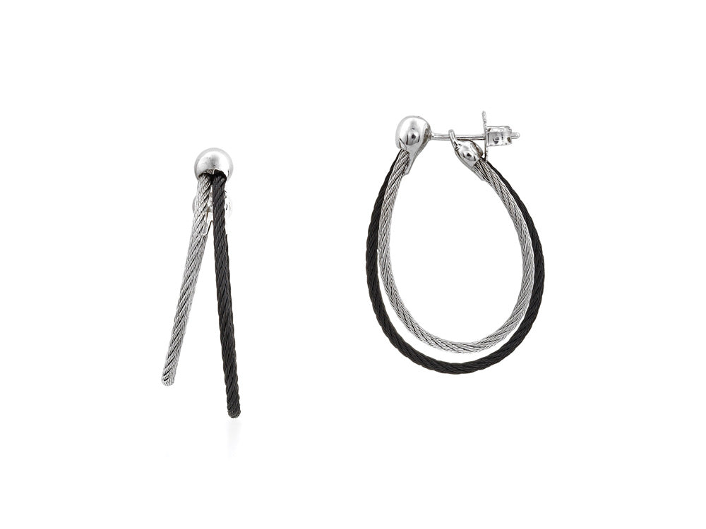 Lady's Two-Tone Black/Gray Stainless Steel Hoop Earrings, BY ALOR #03-54-0623-00