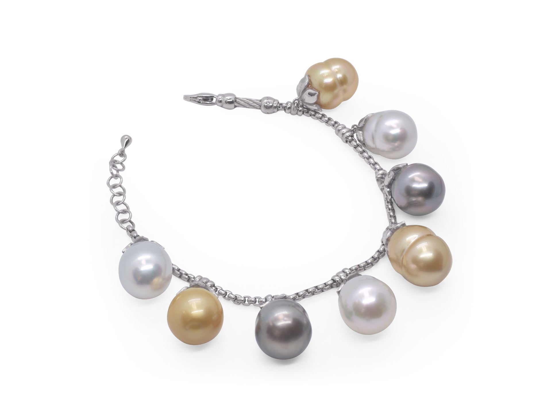 Lady's White Stainless Steel Bracelet Bracelet Length 6 With 8= South Seas Rd Pearls, BY ALOR #06-32-P808-03
