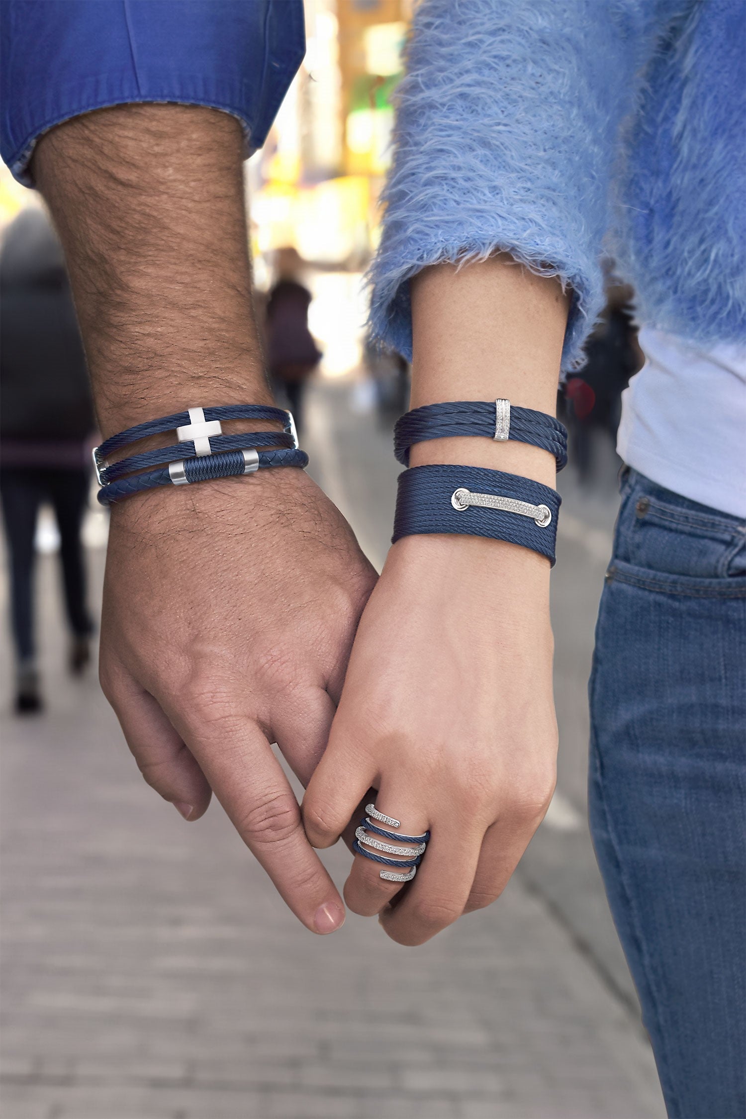 A wrap around ring with alternating cable and diamond.