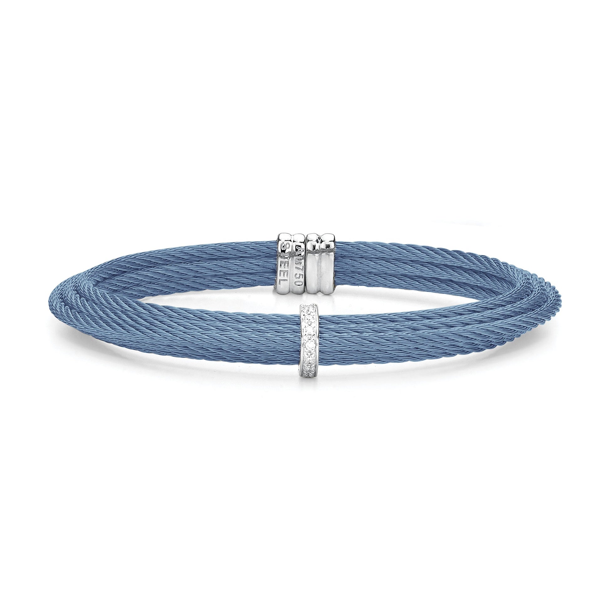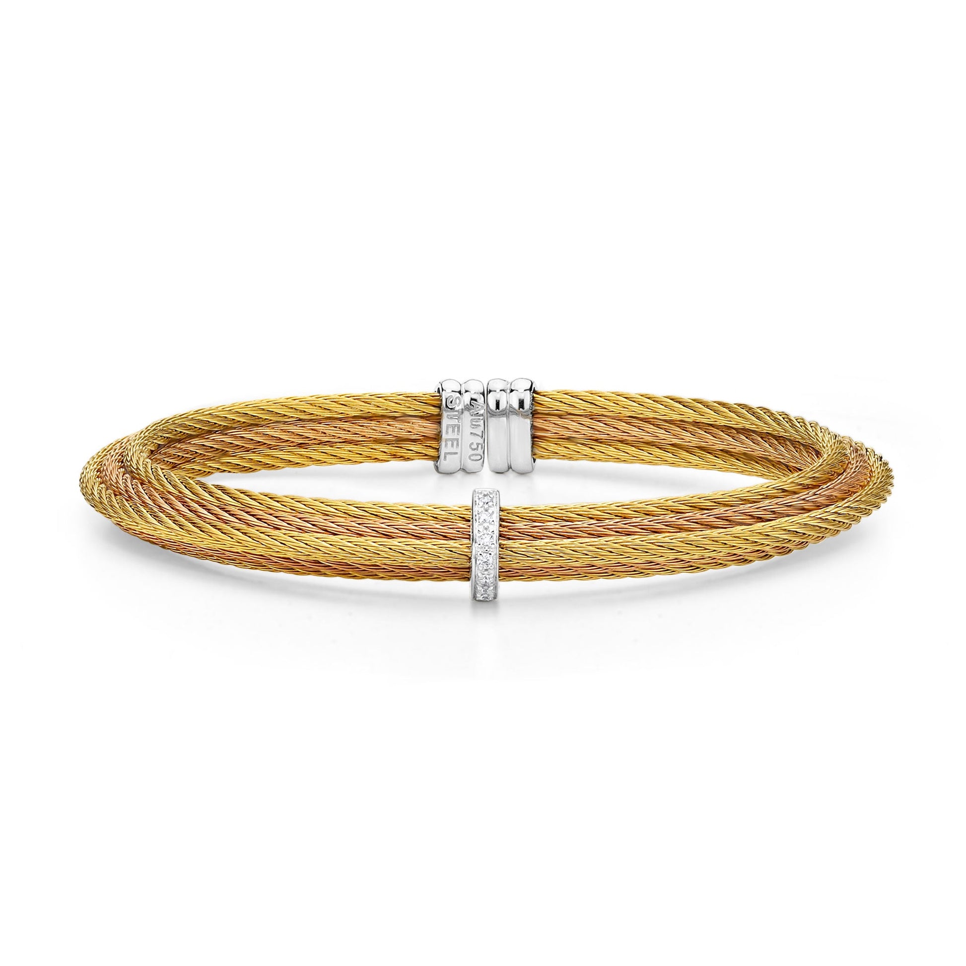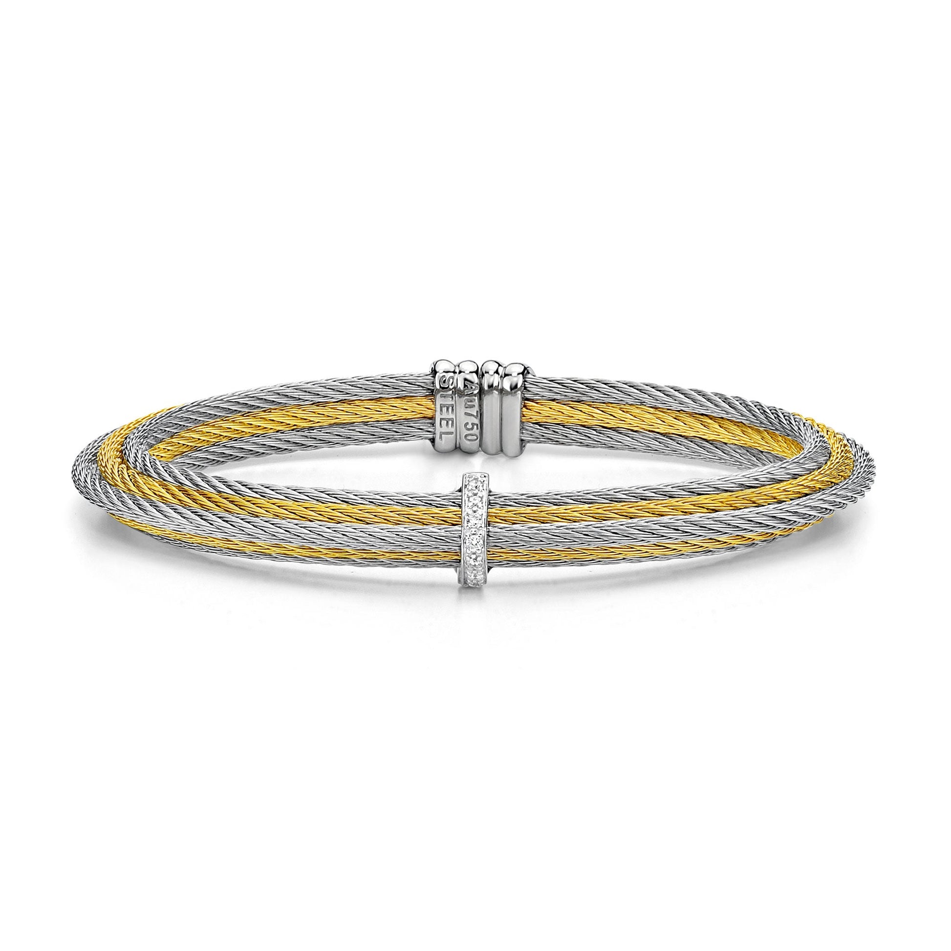 A tiered cuff with a single triangular station of diamonds.