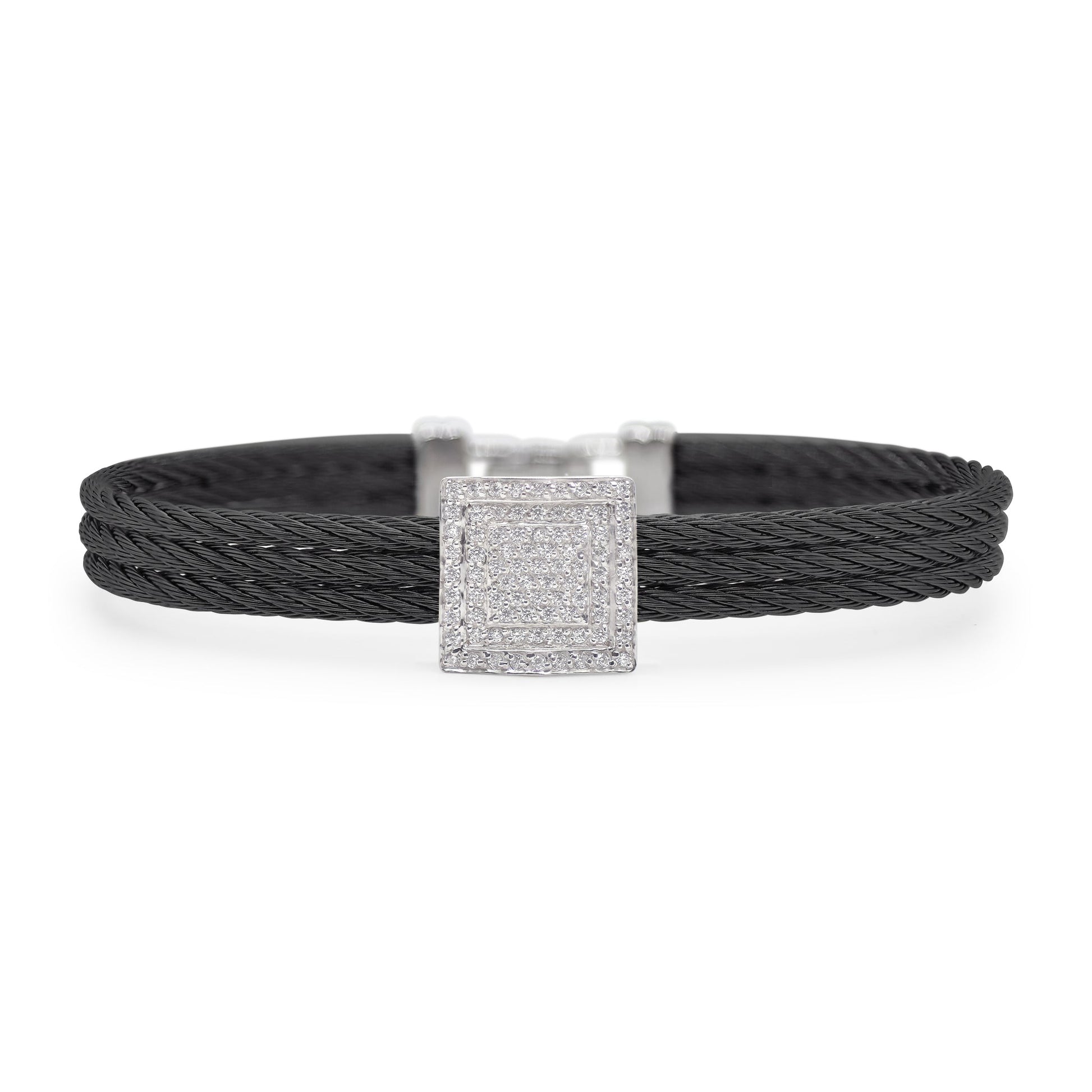Three rows of cable are fused together with a square station of diamonds and 14kt gold.