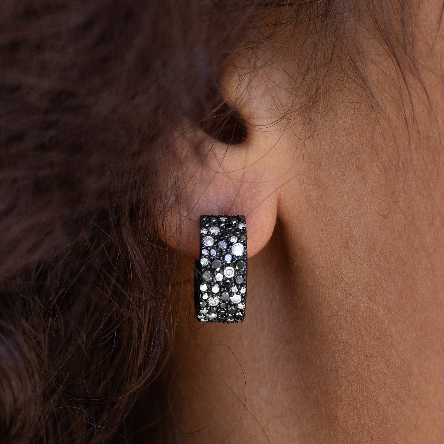 Black and White Cobblestone Diamond Cuff Huggie Earrings