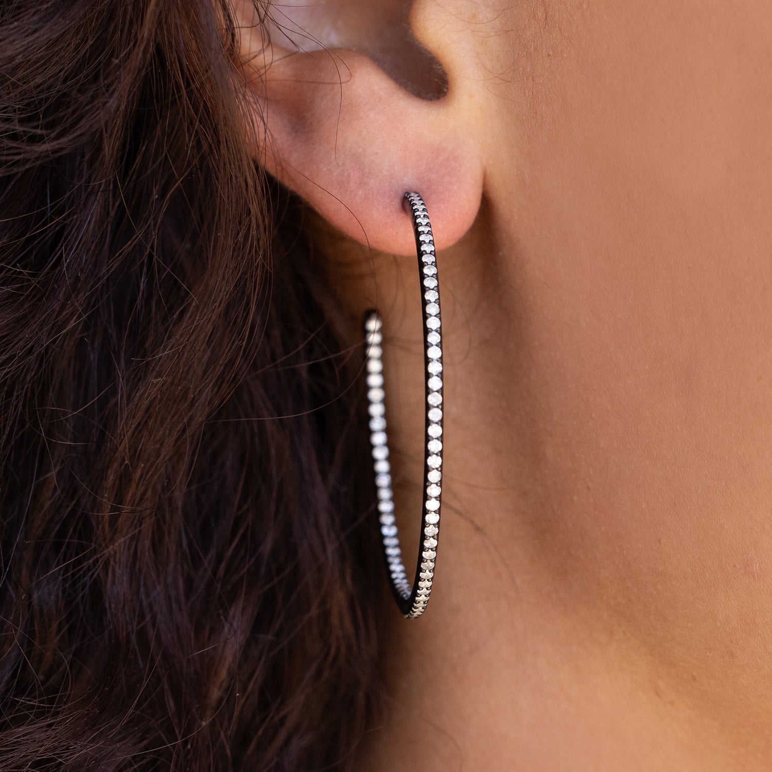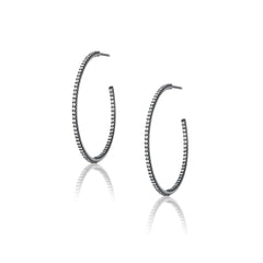 Black Hoop Earrings with White Diamonds
