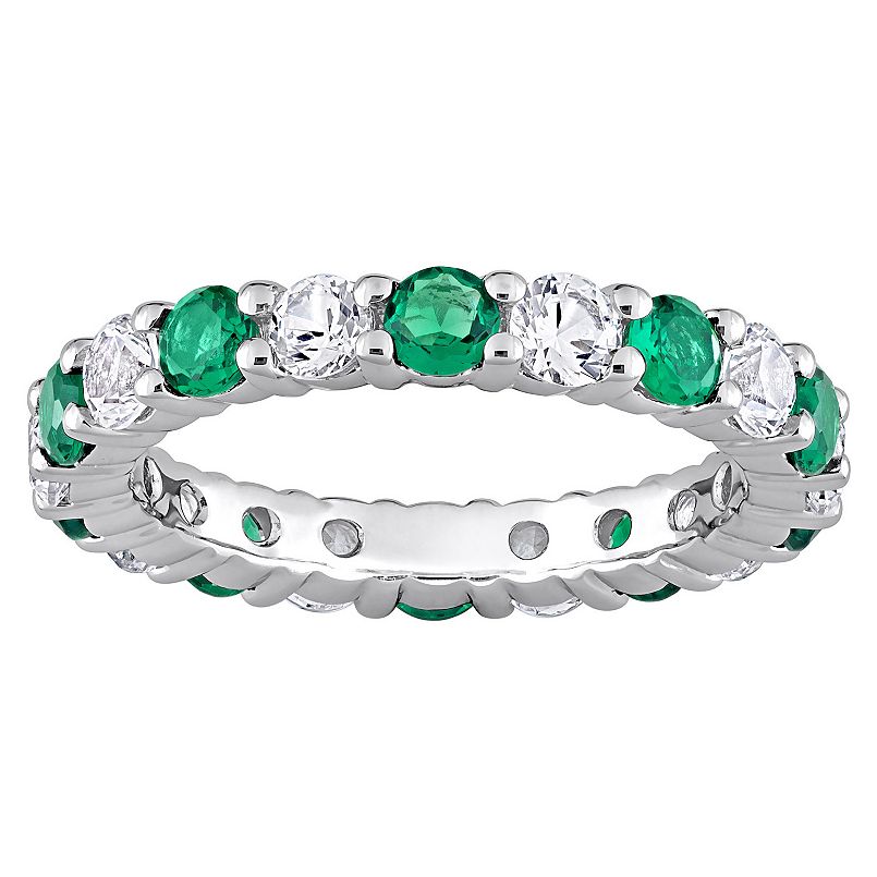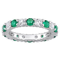 Lady's White 18 Karat Hoop Earrings With 8=0.32Tw Rd Emeralds And 8=0.32Tw Round G In Color Vs Diamonds, BY SPARK #E 6103-EM