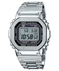 The DW-5000C is the original G-SHOCK model from 1983. The GMW-B5000 Series has inherited its characteristic square design and been given the full metal treatment along with upgraded features including smartphone linking. The watch has been given a full-metal case by using a shock-resistant fine resin cushioning material inserted between the case and the sturdy stainless steel metal bezel. High-density mounting technology also allows the watch to maintain its size. The back of the watch features a solid Screw Lock Back and has been DLC treated for resistance to wear. The metal band has been dimple processed, inheriting the Resin Band design of the original. Visibility too has been enhanced via use of a film solar cell and STN-LCD (liquid crystal). Function-wise, this model comes with Bluetooth® communications and can link with a dedicated app to obtain precise time information. The watch is also packed with practical features including a time correction system that uses standard time and frequency signals (Multi-Band 6), a reliable source of power in the form of Tough Solar technology, high-luminance Full Auto LED backlighting, World Time and day of the week display in six languages. This is a G-SHOCK model that stays true to its predecessor while undergoing further refinement through the application of a full-metal design.