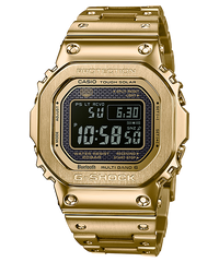 The DW-5000C is the original G-Shock model from 1983. The GMW-B5000 Series has inherited its characteristic square design and been given the full metal treatment along with upgraded features including smartphone linking. The GMW-B5000-1JF has been given a full-metal case by using a shock-resistant fine resin cushioning material inserted between the case and the sturdy stainless steel metal bezel. High-density mounting technology also allows the watch to maintain its size. The back of the watch features a solid Screw Lock Back and has been DLC treated for resistance to wear. Gold ion plating has been applied to the entire case and band for a beautiful color. Visibility too has been enhanced via use of a film solar cell and STN-LCD (liquid crystal). Function-wise, this model comes with Bluetooth® communications and can link with a dedicated app to obtain precise time information. The watch is also packed with practical features including a time correction system that uses standard time and frequency signals (Multi-Band 6), a reliable source of power in the form of Tough Solar technology, high-luminance Full Auto LED backlighting, World Time and day of the week display in six languages. This is a G-Shock model that stays true to its predecessor while undergoing further refinement through the application of a full-metal design.