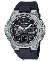 An ultra-thin module encased in carbon fiber makes for a stylish G-STEEL timepiece with the slimmest profile yet.Strong, yet lightweight, the carbon core guard structure absorbs external shocks and retains Bluetooth connectivity and solar power functionality even with smaller components and a thinner module. Measuring just 12.9mm from the back of the case to the top of the bezel, the GST-B400 is over a millimeter thinner than its predecessor .Your choice of four distinctive styles—the simplicity of a silver metal band and silver case; light silver case set against dark resin band; dial in dramatic red vapor deposition finish paired with a black ion-plated bezel; or dial in bold blue vapor deposition finish with black ion-plated bezel and band. With top bezels treated with five different finishes and middle bezels treated with four, these G-STEEL timepieces deliver exceptional metal textures from every angle.* Slimmest profile as of December 2020
