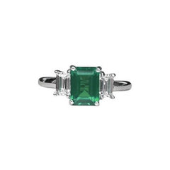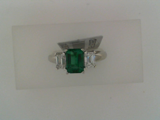 Lady's White Platinum 3 Stone Ring Size 7 With One 1.04Ct Em Emerald And 2=0.77Tw Emerald Cut G In Color Vs Diamonds, BY SPARK #28537-EM