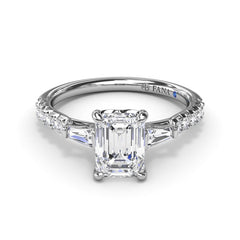 An enduring symbol of love, this emerald cut diamond engagement ring features tapered baguettes to emphasize its center stone. This design can be customized based on stone shape and metal preference.