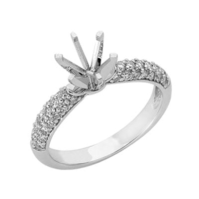 This Engagement Ring is available in 14K White Gold. There are a total of 40 stones. There are Rounds with a total carat weight of 0.46 set in a Micro Pave setting.