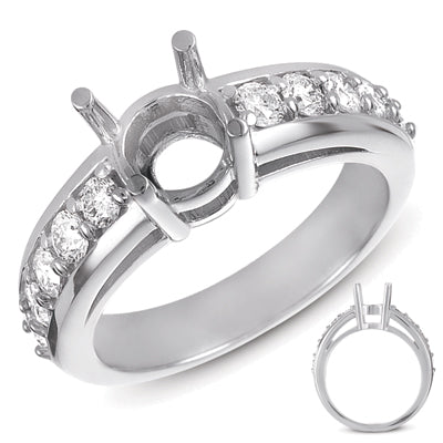 This Engagement Ring is available in 14K White Gold. There are a total of 10 stones. There are Rounds with a total carat weight of 0.72 set in a Micro Prong setting.