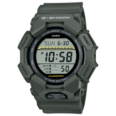 Enjoy a life of fewer battery changes with a large-case G-SHOCK with a 10-year battery you won’t have to worry about for ages.The digital GD010 delivers handy features like world time and stopwatch, as well as a high-brightness LED light, which can be easily accessed from the large button on front of the case, ensuring visibility even in the dark.Made with bio-based resin and equipped with a 10-year battery, this G-SHOCK is great if you want to reduce environmental impact.Available in a selection of black-based workstyle color schemes for a cool design that moves with ease from casual settings to work situations.