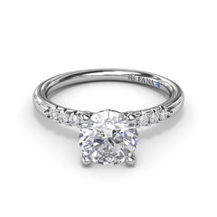 This quarter band diamond engagement ring will amplify the gorgeous center stone. This design can be customized based on stone shape and metal preference.