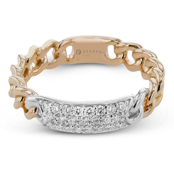 This chic ring features a bold cuban link design in warm yellow gold, elevated by a wide pav diamond bar for dazzling brilliance. Its modern-meets-classic style makes it perfect for stacking or standing out solo.