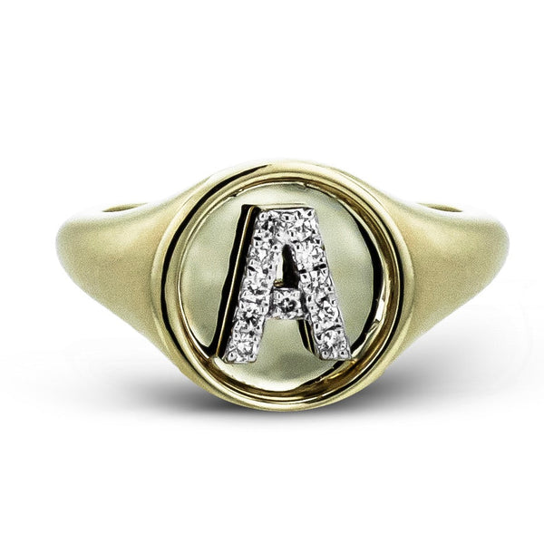 This bold and modern signet ring features a raised, diamond-accented letter set atop a matte-finished yellow gold surface. With its personalized touch and sleek, contemporary styling, it makes a meaningful statement piece for everyday wear.