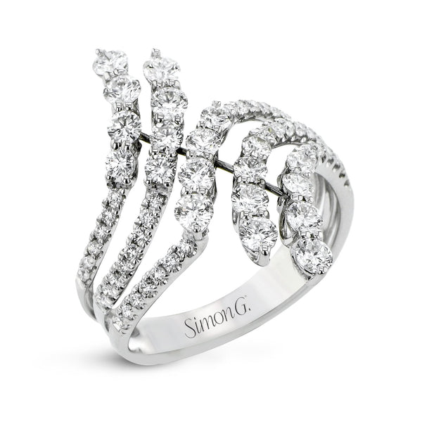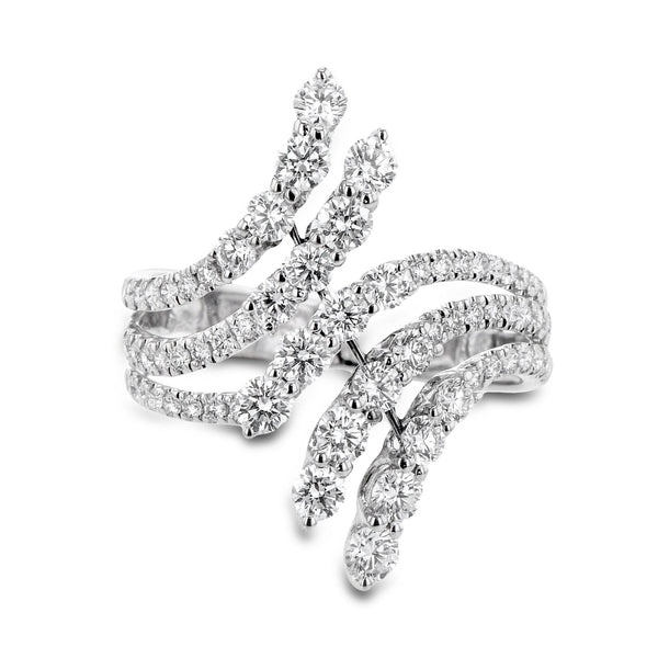 This stunning ring makes quite a statement with an intricate, split-shank design adorned with shimmering white diamonds.
