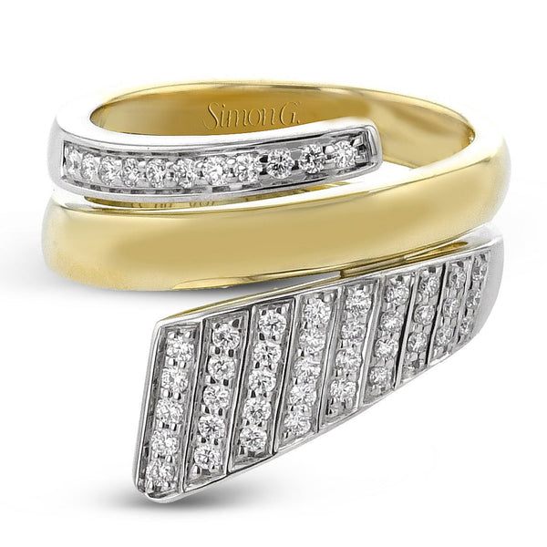 This bold, two-tone ring features a layered twist design set with brilliant white diamonds.