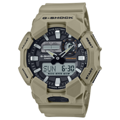 Enjoy a life of fewer battery changes with a large-case G-SHOCK with a 10-year battery you won’t have to worry about for ages.The analog-digital GA010 delivers handy features like world time and stopwatch, as well as a high-brightness LED light, which can be easily accessed from the large button on front of the case, ensuring visibility even in the dark.Made with bio-based resin and equipped with a 10-year battery, this G-SHOCK is great if you want to reduce environmental impact.Available in a selection of black-based workstyle color schemes for a cool design that moves with ease from casual settings to work situations.