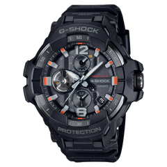 Whatever you’re doing, wherever you are — the G-SHOCK Master of G line has your back. Based on GRAVITYMASTER, MUDMASTER, and MUDMAN models that deliver peak performance in punishing conditions in the air and on land, this line features a black watch case symbolizing toughness, with accents in vivid emergency colors that capture the world of professionals involved in rescue efforts and other critical missions. The organic form of the GRAVITYMASTER GRB300EC is inspired by next-generation aircraft and rendered with a seamless exterior design. The Carbon Core Guard structure and wide 3D face deliver durability, readability, and a comfortable fit. Enjoy all the practical functions as well, including dual-time simultaneously showing the time in two cities, a flight log memory function for recording routes traveled, and more.