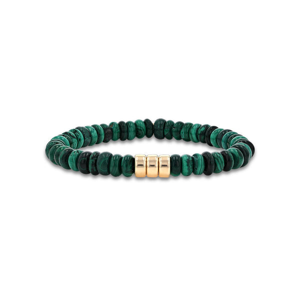 Men's Mr. LOWE Malachite Bracelet with 3 14k Gold Rondelles - 8mm