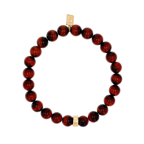 Men's Mr. LOWE Red Tiger's Eye Bracelet with 14k Gold Rondelle - 8mm
