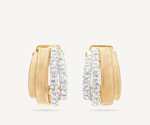 Carefully hand-crafted with the brand���s exclusive coil technique, these huggie earrings feature two flat coil threads and two brilliant-cut diamond bands. A perfect interweaving for these elegant and sophisticated 18K yellow gold earrings, a real must-have with timeless appeal.