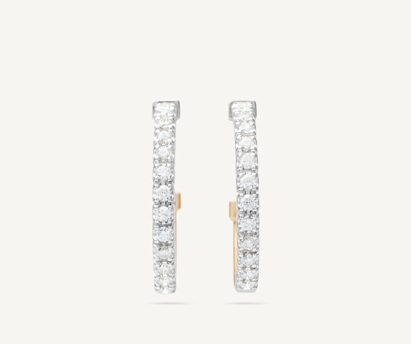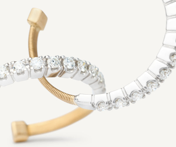 The linear elegance of our coil meets the light of diamonds. Timeless, elegant and full of finesse, these 18K yellow gold hoop earrings are embellished with brilliant-cut diamonds. Perfect for adding a touch of light to any outfit.
