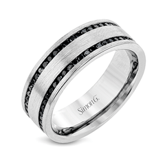 This bold wedding band introduces a fresh take on a timeless look with a brushed gold finish and white diamond accents.