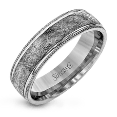 This contemporary white gold men's band features a distinctive wave design that creates a memorable look.