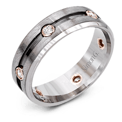 This men's band features a clean, modern design with two rows of black diamonds set in a brushed shank crafted with our proprietary gray gold.