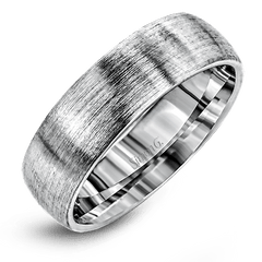 A hammered platinum center highlights the contemporary design of this men's wedding band, outlined with sleek rims.