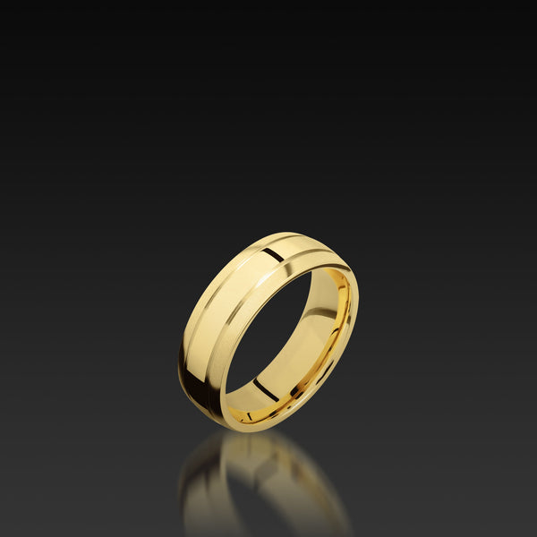 • 14 karat Yellow Gold wide domed band with polish and bead finish