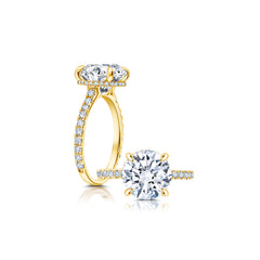 A classic, this hidden halo features larger diamonds on the shank. Works beautifully for any shape center.
