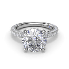 Sophistically crafted, this angelic diamond engagement ring is contoured by a breathtaking hidden halo and a pave diamond band for the highest level of elegance. This design can be customized based on stone shape and metal preference.