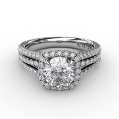 Cushion-Shaped Diamond Halo Engagement Ring With Triple-Row Diamond Band S3315