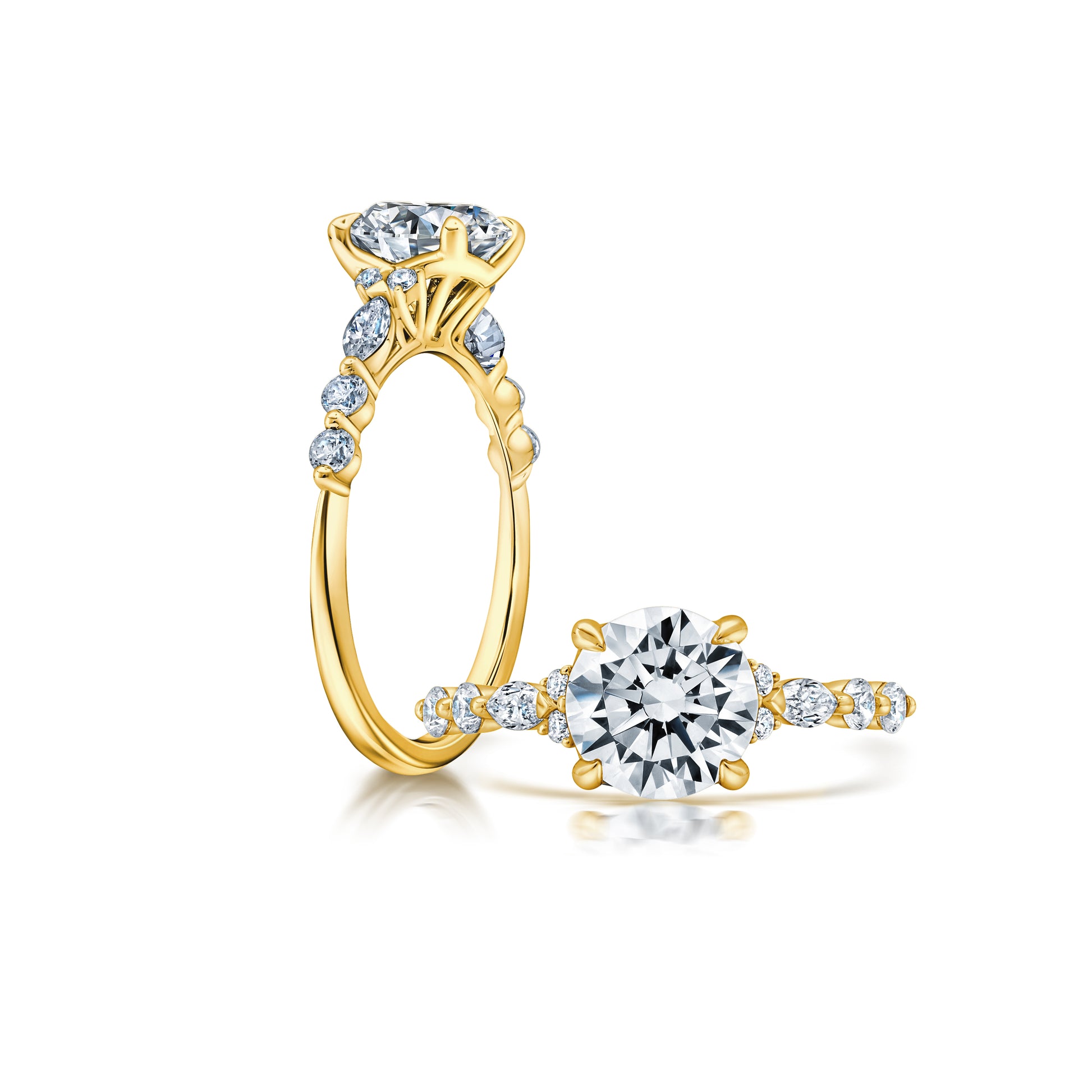 This elegant ring showcases a delicate flower-shaped halo surrounding a sparkling round center stone, creating a timeless and graceful look. Its refined design enhances any outfit, making it a perfect choice for special occasions or everyday elegance. The combination of floral inspiration and radiant sparkle offers a beautiful symbol of style and sophistication.