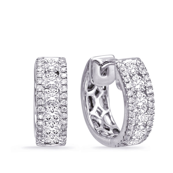 This Earring is available in 14K White Gold. There are a total of 76 stones. There are Rounds with a total carat weight of 0.79 set in a Channel Set|Micro Prong setting.