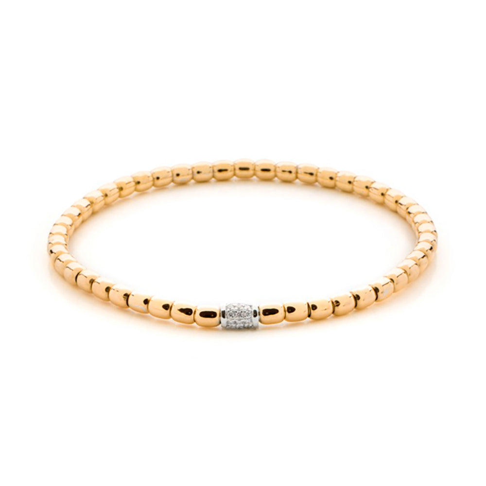 Lady's Yellow/ 2-Tone 18 Karat Stretch Bracelet Length 6.5 With 27 = 0.20Tw Round G In Color Vs Diamonds, BY HULCHI BELLUNI #20323H-YWW