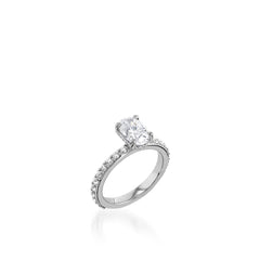 This elegant ring is crafted in 18-karat Yellow Gold and is also available in White, Rose Gold, and Platinum. It features pavé diamonds with a total weight of 0.65 carats and comes in stock size 6.5.