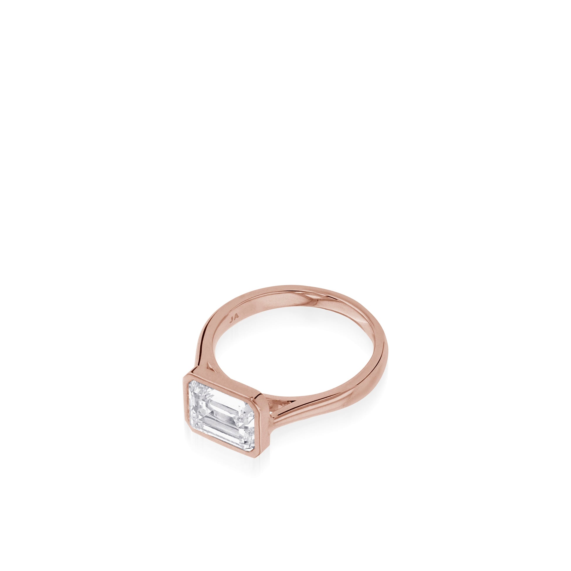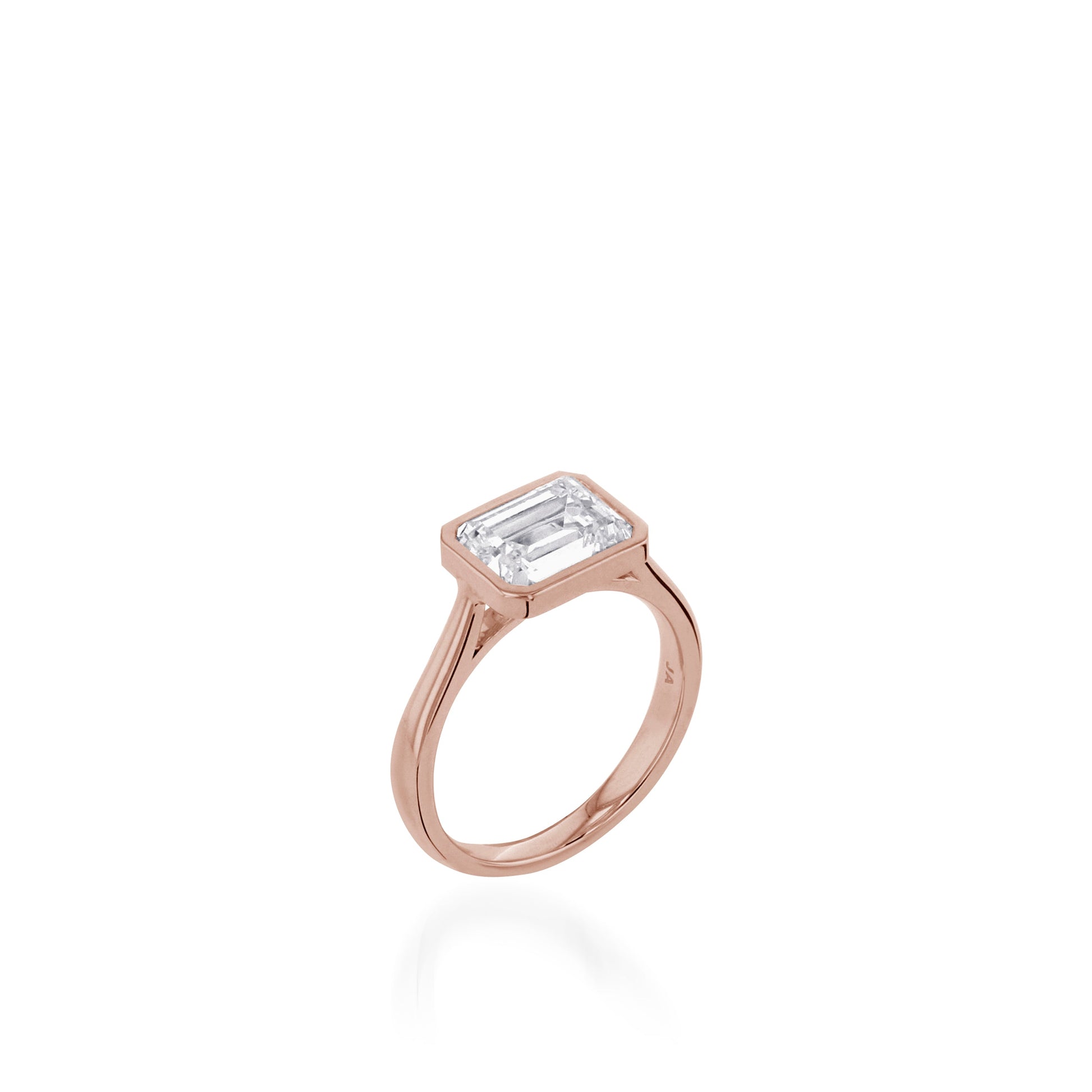 Ring shown in 18-karat White Gold. Also available in Yellow or Rose Gold and Platinum. Grace Bezel Set 2.00 Carat Emerald Cut Setting. Price shown. Setting can be made for any diamond size and shape. Contact a John Atencio representative. Ring Stock Size: 6