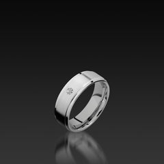 - 14 karat White Gold grooved edge band with satin and polish finish