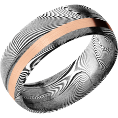 Gent's Two-Tone Damascus/14KT ROSE Steel Engraved Domed Wedding Band Size 10, BY LASHBROOK #D8D12OCTIGHTWEAVE/14KRMM: 8