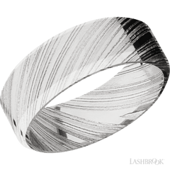 Gent's White Damascus Steel Woodgrain Engraved Flat Wedding Band Size 10, BY LASHBROOK #D8HBWOODGRAINMM: 8