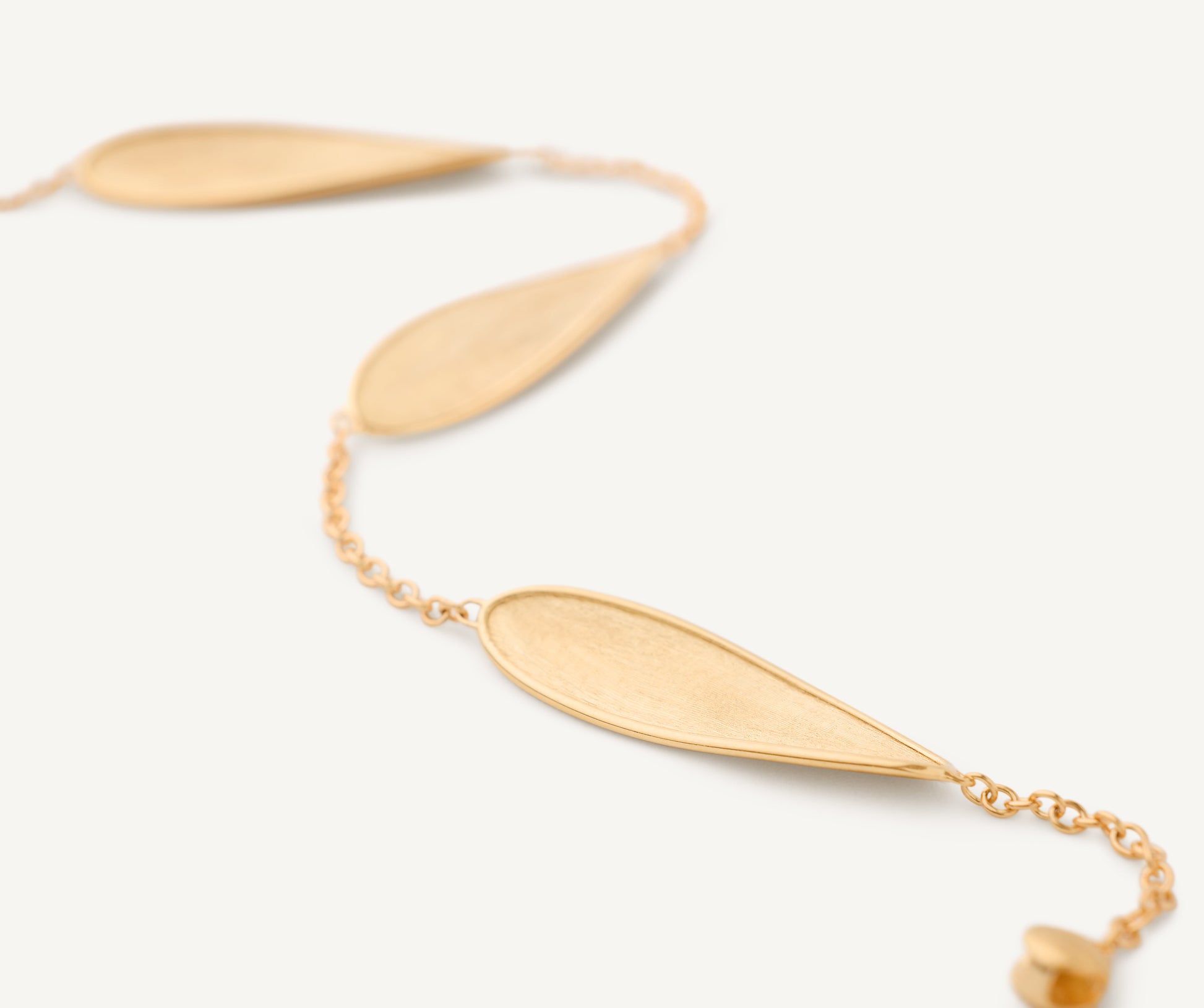 The iconic leaf motif reimagined with a refined twist. This delicate bracelet features a sequence of 18kt yellow gold leaves gently twisted to create a fluid and sculptural silhouette. Finely hand-engraved using the ancient Florentine technique, this bracelet is the perfect piece for your everyday look.��