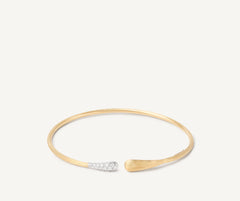 A delicate bangle in 18kt yellow gold, hand-engraved using an ancient Florentine technique and embellished by an elegant drop featuring a brilliant-cut diamond pav��. Elegant and refined, it is perfect worn on its own or combined with other Marco Bicego jewellery.