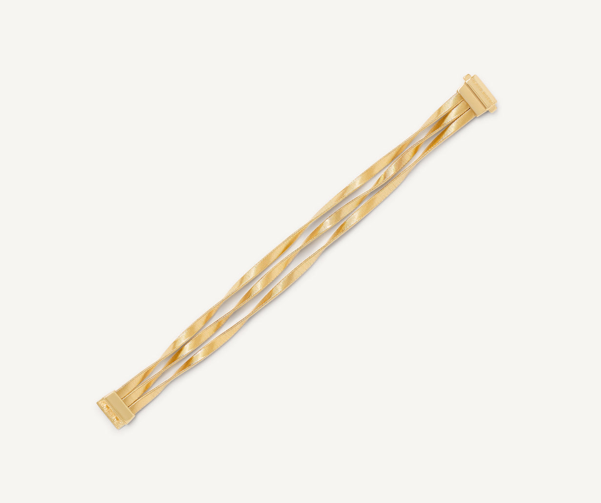 This bold three-strand twisted bracelet ensures a dynamic play of reflections. Available in 18kt yellow gold, crafted with the artisanal coil technique, it is elegant and sophisticated. A piece of jewelry that does not go unnoticed.