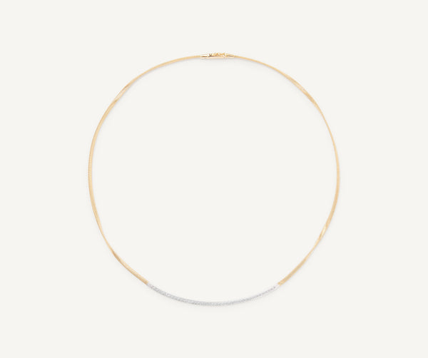 A single 18kt yellow gold spiral strand, carefully created with the exclusive coil technique and embellished with a diamond bar. With its delicate look, this necklace is a timeless classic granting any outfit a touch of radiance.