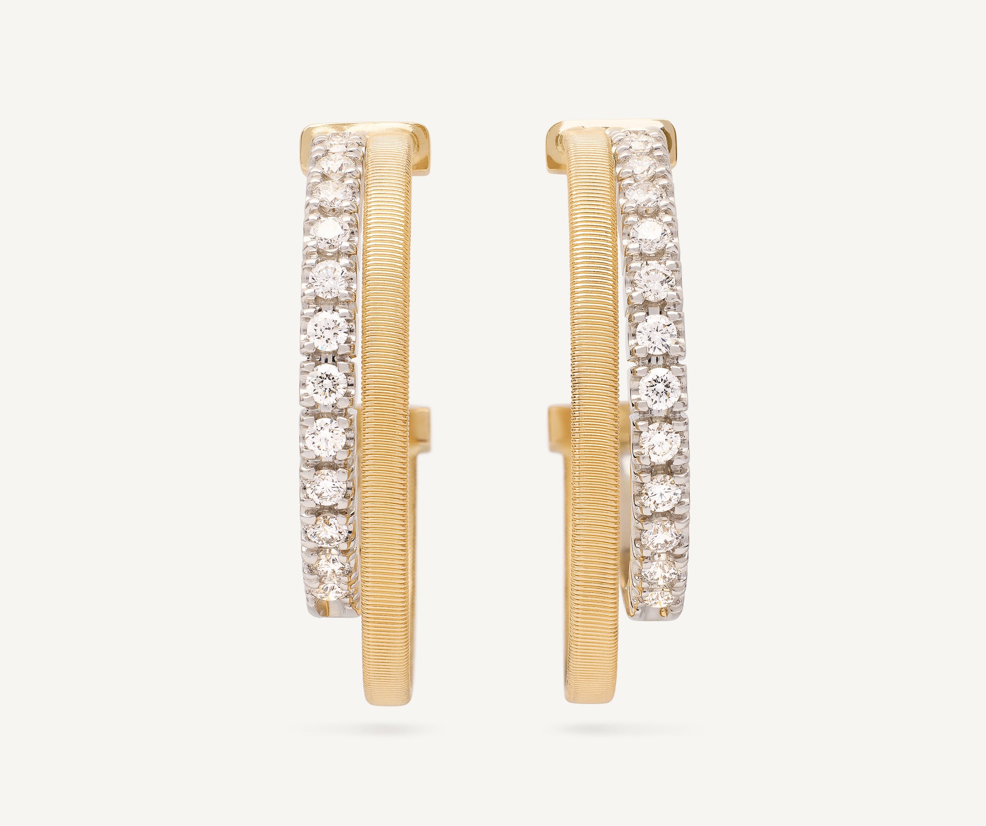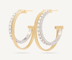 Hand-crafted in 18K yellow gold, these hoop earrings are carefully created with the exclusive coil technique. The flat coil hoop is embellished by a side hoop of brilliant-cut diamonds. Perfect for adding a touch of light to any outfit.