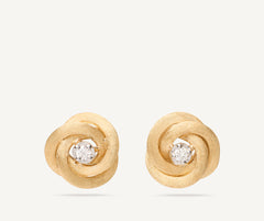 Refined stud earrings that stand out for their wearability and style. 18K yellow gold flowers, finely hand-engraved using the ancient Florentine technique, are embellished by a brilliant-cut diamond: the perfect jewelry for romantic women.